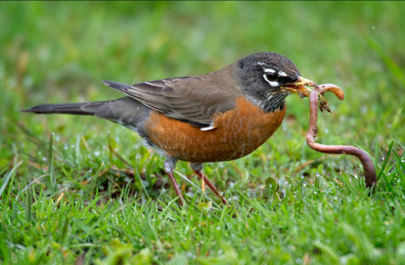 In the third stanza, the poet describes the bird’s frightened behavior after eating the worm: